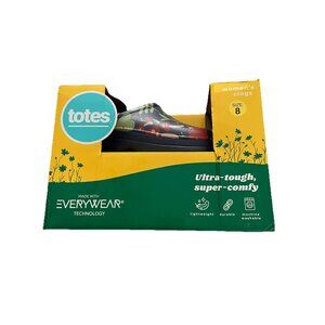 Step into comfort and whimsy with these Totes Everywear Ladies Clogs, featuring a delightful veggies garden pattern that brings a touch of nature to your everyday wear. The slip-on design and round toe shape ensure a hassle-free experience, perfect for those on the go. Crafted with a durable rubber upper and a comfortable flat heel, these clogs are ideal for casual outings during the fall, spring, or summer seasons. Designed with practicality in mind, these size 8 clogs boast a sturdy rubber outsole for reliable traction and a soft insole for all-day comfort. The low-top shaft style and standard shoe width accommodate a variety of foot shapes, making these clogs a versatile addition to any wardrobe. Whether you're working in the garden or simply enjoying a leisurely walk, these Totes clogs are your go-to for a cheerful and comfortable experience.