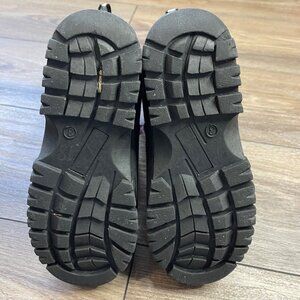 Heel wear and fading on one of the suede panels, wear on inner stockings. See all photos for condition.