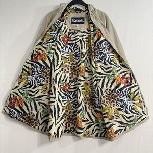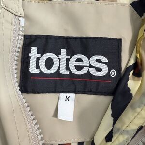 Totes Rain Coat Floral Lined Hooded Pockets Zip Drawstring Women's Size M Beige