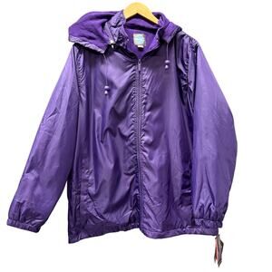 Totes Rain Jacket Womens XL Purple Removable Hood Fleece H2O Resistant NEW