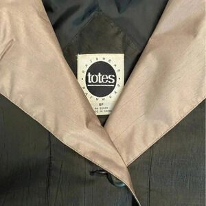 Totes Rainwear Women’s Trenchcoat Raincoat Size 8P Black Pewter Collar Classic