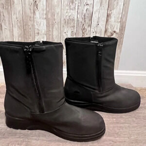 Lightly worn, waterproof snow boots with fleece lining. Size 8, in black. Double size zippers all working.