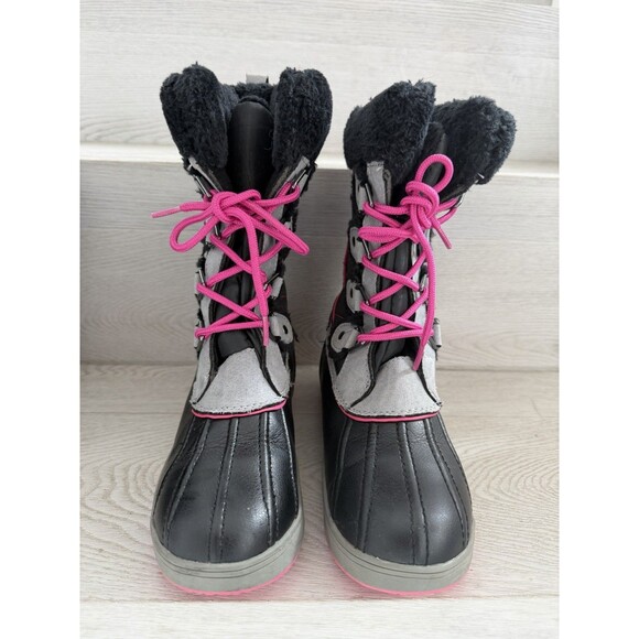 Totes Shelby Girls' Winter Black, Gray & Pink Snow Boots 4M