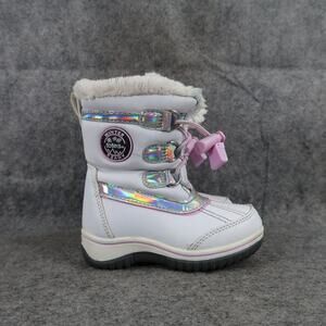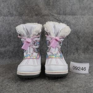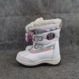 Used Totes Shoes Girls 5 Boot Winter Snow Baby Toddler Drawstring Faux Fur Warm White