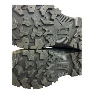 Stay warm and stylish with these durable men's winter boots. Featuring a rugged black sole and a brown upper, these boots are perfect for cold weather adventures.
