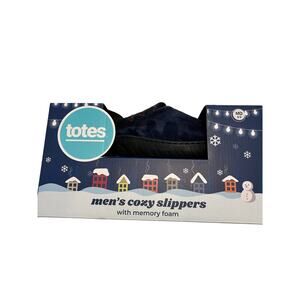 Totes Toasties Men's Memory Foam Slippers - Navy Blue & Plaid - Size MD 8-9 NEW