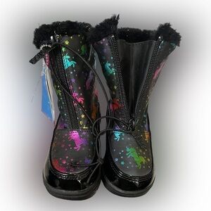 Make winter magical with these adorable Totes toddler winter boots featuring a fun unicorn pattern your little one will love! These boots don’t just look cute — they’re built to handle cold, wet weather while keeping tiny feet warm and dry.