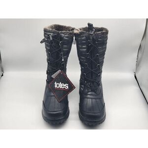 Totes Womens Ember Black Winter Boots Faux Fur Lining Size 8M