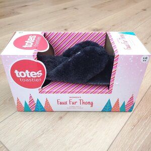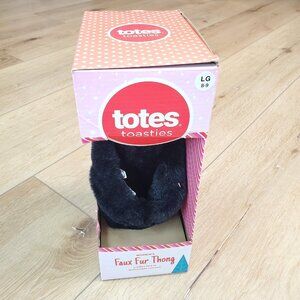 Totes Womens Slippers Black Size L 8-9 Faux Fur Thong Flip Flops Gift Holiday