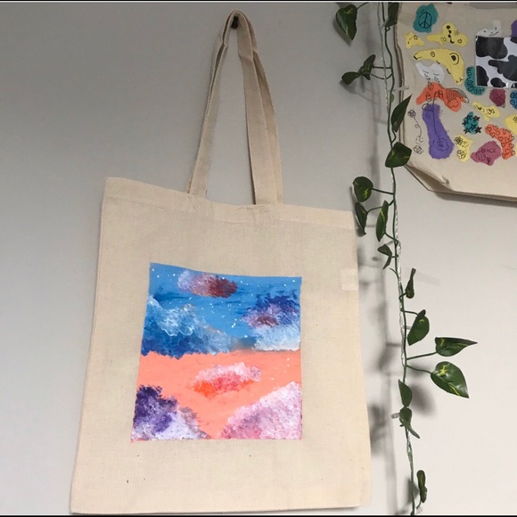100% cotton vintage tote bag with hand painted Size: 11x13
