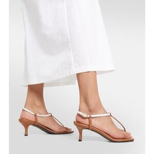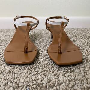 Totême Bicolor Kitten-Heel Sandals Size 37 White Tan Leather Casual Designer