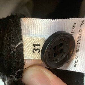 “Worn with some light fading but in good condition. Originally had built in belt/tightener but they were worthless and heavy and I cut them off. So now it just has regular belt loops, you can hardly notice the alteration unless you knew to look” Very nice 100% cotton chino. They flood hard, well above the ankle, so they may be 25 inch inseam so you have to be into the style. Material is great, some slight signs of wear and fading, but they look good. They had some built in metal fastener on the hip but they worked poorly and I cut them out. Now they are just regular pants with regular belt loops, much better.