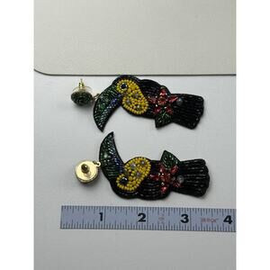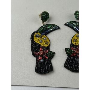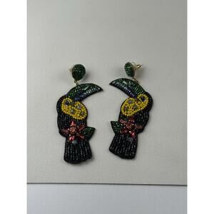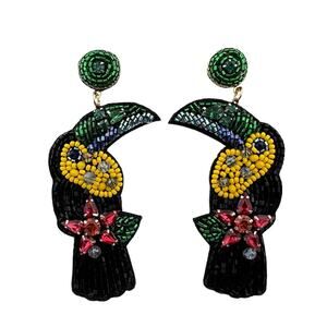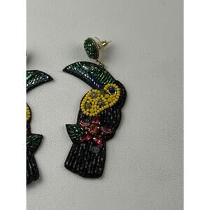 Toucan Bird Multicolor Seed Beaded Dangle Pierced Earrings