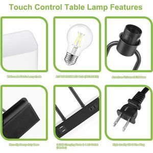 đ§żâ€ă3 Level Brightness Touch Control Table Lampă: This modern bedside lamp has 3 different brightness options (low, medium and high) to meet your various demands at different times or occasions. Upgraded touch control feature makes it exactly convenient to turn on/off and adjust to your favorite brightness level, just tapping any metal part of the sturdy base, stems or even the finial on the socket, greatly handy to operate, no more minding switch lost or broken.
