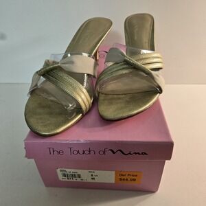 Touch Of Nina Size 8.5 Gold Grail Formal Strappy Stiletto Heel in Box EUC