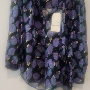 Zadig & Voltaire Touch Roses Tie Neck Top Floral Print Top Size Small