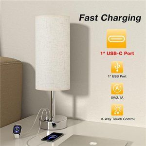 🧿💡【Upgrade】【 USB-A & USB-C Charging Port 】- The modern touch lamps for bedroom are equipped with a USB-A and a USB-C port, which can stably maintain 5V2.1A output, make your phone, tablet, humidifier, kindle, headsets and other electronic devices are quickly charged whether the USB lamp is on or off. Fully save your time and space.