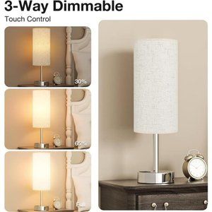 🧿💡【Upgrade】 【 3-Way Dimmable Touch Bedside Lamp 】 - You can quickly turn on/off and adjust the brightness by touching the base or lamp pole. Very easy to control and suitable for people of any age. You can choose three different brightness (30%, 65% and full brightness). It can be used as a night lamp at 30% brightness, 65%/ full brightness is enough to meet your needs for reading, which is good for protecting your eyes and preventing myopia.