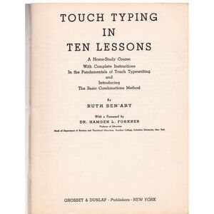 Touch Typing in Ten Lessons by Ruth Ben’Ary (1945 Softcover, Grosset & Dunlap)