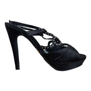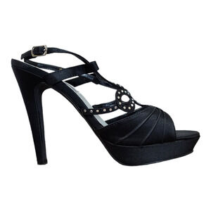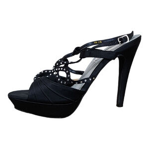 Touch Ups Lonnie Black Satin Rhinestone Platform Heels Women’s Size 8.5