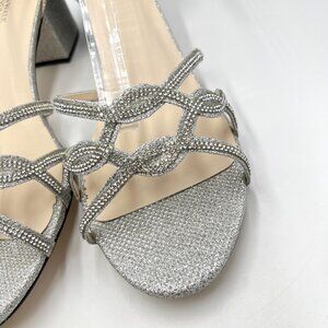 Touch Ups Womens 12M Zoey Silver Sparkly Low Block Heels Dress Sandals Shoes