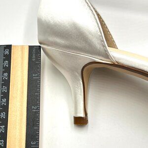 Touch Ups Womens Size 9.5 Ophelia White Satin Jeweled Dress Sandals Heels Shoes