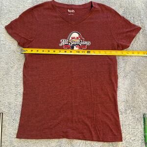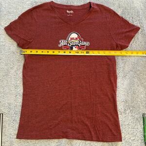 Be a part of the action with this Touch by Alyssa Milano L Official MLB All-Star Game 2009 Lady's baby doll T-shirt. Show your support for the St. Louis Cardinals and the Major League Baseball All-Star Game with this red shirt. The shirt is made in the United States and is officially licensed by MLB. This shirt is perfect for women who love baseball and want to show off their team spirit. The shirt is a size L and features the Touch by Alyssa Milano brand. It is also a great souvenir for fans of the MLB All-Star Game. Get yours today and be ready for the next big game!