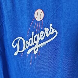 Support your team with this vibrant blue Dodgers tank top. Ideal for casual wear or game days. Ties at the shoulders. Soft and stretchy comfortable fabric. Small Dodgers logo at the chest. Banded bottom hem. There are a couple of faint marks on the front, see close ups. I have not tried to stain treat. Does stretch. Great for game day at the park, at home or wherever you support your favorite team! Girly, feminine, casual, fan, summer, colorful, royal blue, sporty. Runs a little small for an XL, could fit like a smaller size large.