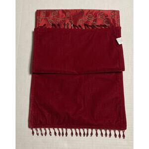 Touch of Class Vine and Holly Reversible Christmas Table Runner with Beaded Edges, 72” X 13.25”. Side with holly has satin feel, and other side is velvety. Difficult to capture beauty in photos. Please see color chart in photos, as runner is closest to Barn Red (lower right corner). Four are available. Shipped USPS.