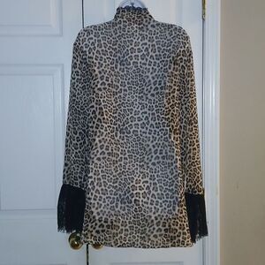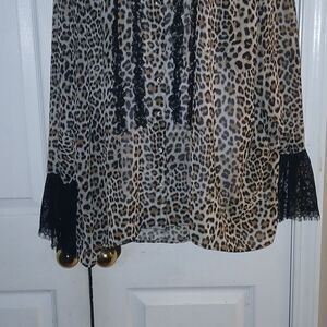 Touch of Cyn animal print sheer lace trim and lave sleeve blouse
