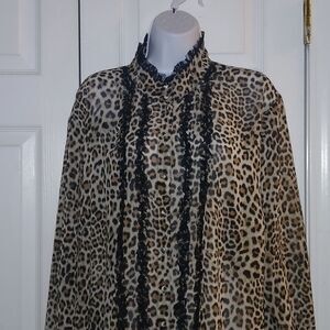 Touch of Cyn animal print sheer lace trim and lave sleeve blouse Sz 3x NWOT