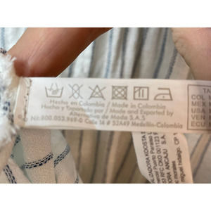 Touche Balneaire Dress Womens Medium 100% Linen Ruffle Tired Blue Cream