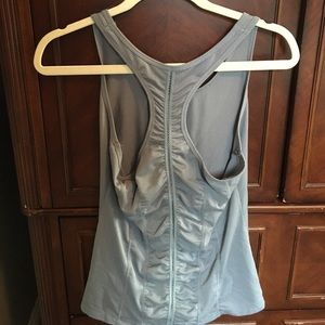 This grey tank was purchased from Kohls & is made of a super light weight mesh material. It also has flattering ruching on the back & and racer back cut.
