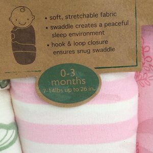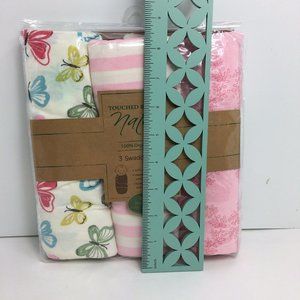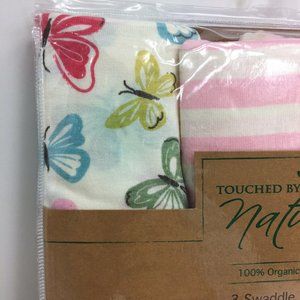 Touched By Nature Swaddle Wraps Organic Cotton Butterflies Pink Floral 0-3 M New