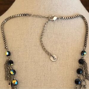 Jet Aurore Boreal Crystals; Oxidized Silver Plating.