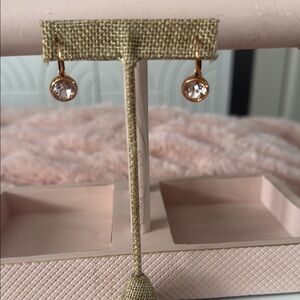 Touchstone Crystal by Swarovski earrings. Featuring bezel-set clear crystals that catch the light beautifully, these drop earrings are set in a warm rose gold-tone finish. Lightweight and versatile, they offer a secure lever-back closure. Excellent condition and have never been worn..