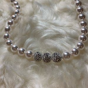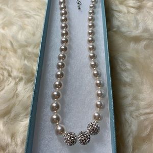 Touchstone Crystal by Swarovski “Elegance Necklace” 15” to 18” Get the Classic Pearl Look with a Sparkling Twist. Swarovski Crystal snd Crystal White Pearl Crystal, Rhodium Plated. See matching Bracelet in my listings. So Beautiful. Getting married, this would be perfect!