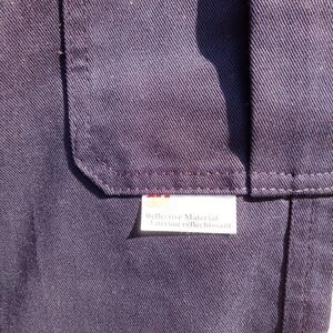 FEATURES: 3M 2" Reflective Material with 4" contrast backing Fly front closure 2 slash pockets 2 side cargo pockets with bellows 7 belt loops 2 rear welt pockets with button loops