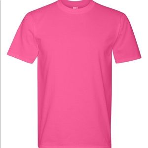 100% Cotton professional heat pressed screen print Tee. Also available in pink