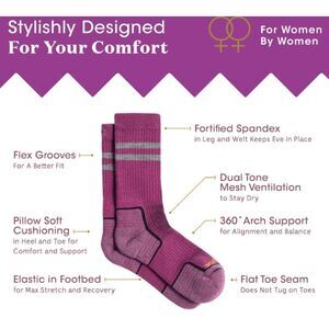 ToughCutie Women's Eve Light Weight Hiker Crew Socks Size L 10-13