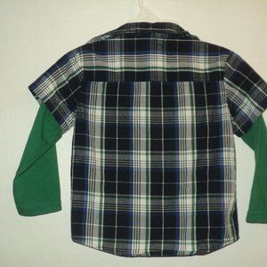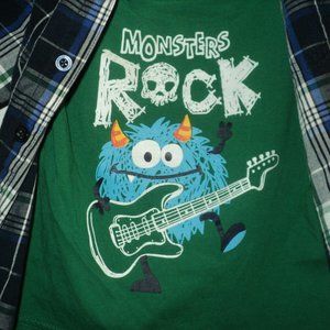 Toughskins Boys Size 3T Monsters Rock Layered Look Long Sleeved Shirt Plaid