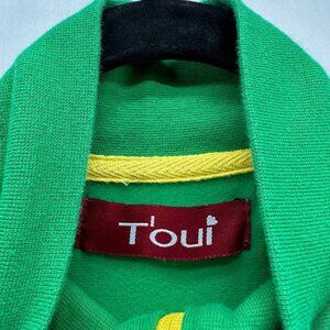 T'oui Jacket Womens Size L BRAZIL Striped Track Full Zip Long Sleeve Green