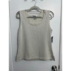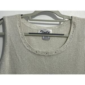 Toula Knit Tank Top Size 8 Silver Beaded Embroidered Wool Blend Preppy NWT