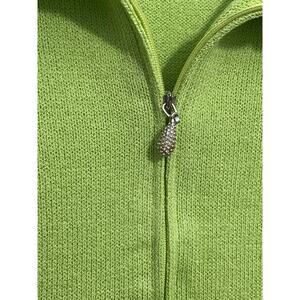 Stunning Toula Wool Blend Cardigan Sweater Size 12 Lime Green Rhinestone Country Club NWT. Ruffled collar, rhinestone collar and sleeves, rhinestone zipper pull, 3/4 Sleeve
