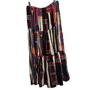 Tour De France One Size Layered Maxi Skirt Aztec Festive Boho Hippie Ruffle