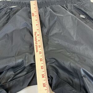 The Tour Master Sentinel Motorcycle Rainsuit Pants are specifically designed for women in size Large (12-14). These black nylon pants feature a pull-on closure and zip open to fit boots. They are windproof, waterproof, and reflective for safety, with pockets for convenience. Perfect for motorcycle riders, these rain pants offer both style and functionality in a sleek design.