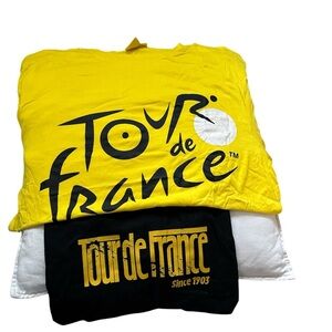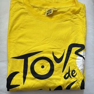 A yellow Sz S short sleeves t-shirt featuring the classic "Tour de France" logo, 100% cotton, new