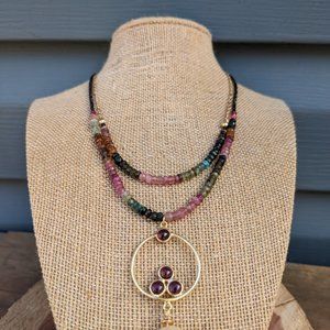 Tourmaline Garnet Gold Filled Vermeil Two strand Necklace FREE SHIPPING