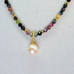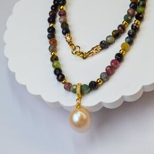 This isn't just a necklace; it's a work of art that beautifully marries the vibrant energy of tourmaline with the serene perfection of a rare Edison pearl. An exquisite piece that will undoubtedly draw compliments and become a cherished part of your collection.