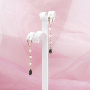 Each earring combines the tranquil hue of green tourmaline with the timeless appeal of small pearls, offering a look that’s both refreshing and refined. The cubic zirconia-adorned French hooks lend a touch of elegance without overpowering the design.
